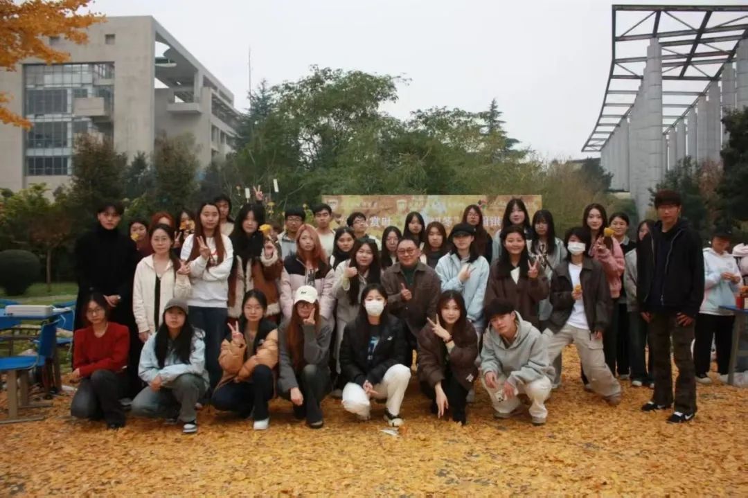 “拾秋赏叶,艺暖初冬”的展板前,渐渐缀满层层心愿。师生们执笔为媒,在银杏叶上落墨,或以外语写就祝福,或以母语倾诉衷肠。那些关于理想、关于眷恋、关于未来的字句,使平凡的叶片化作会呼吸的信物,拼贴成这个季节最温暖的风景。人们在此驻足、流连、合影,将这份属于初冬的暖意,收藏进记忆的扉页。