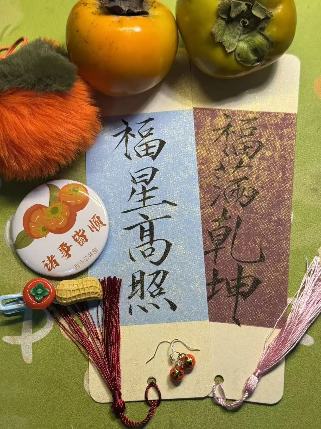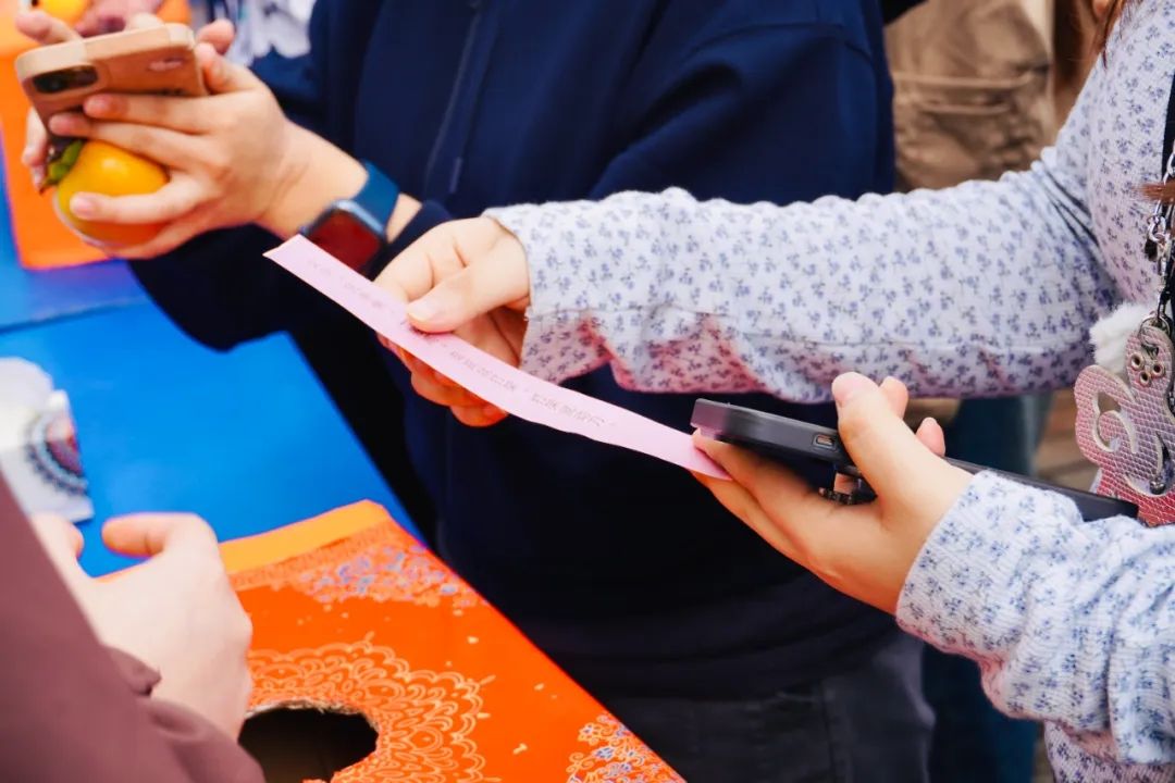 远离采摘区的热闹,猜谜区另有一番雅趣。淡彩谜笺轻悬于柿枝之下,“红灯笼,挂树梢,没根没叶甜条条”——有人凝神思索,有人细声讨论,直至谜底“柿子”脱口而出,获奖时的欢欣,仿佛比柿果更明亮。这份光亮中,蕴藏着总务部的深情:除了实用礼品,更有老师们亲手制作的心意;手写书签,更是把一季秋色凝于方寸之间。接过它们的人,指尖触摸的不只是礼物,更是一份校园独有的温柔。