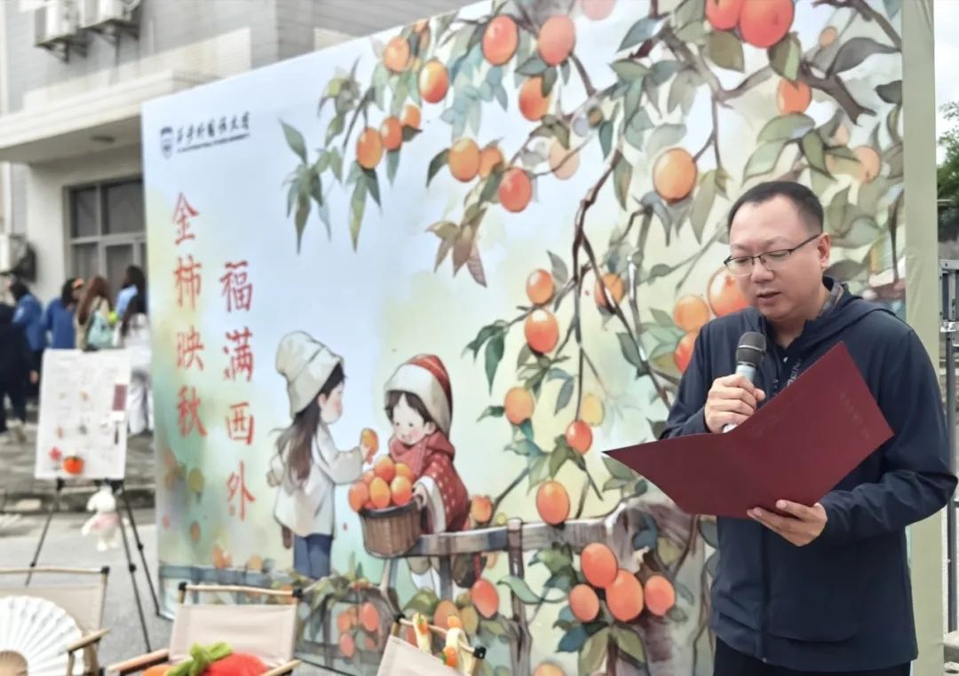 风仍带微凉,总务部党总支书记姜涛为活动致开幕辞。姜书记指出,柿子采摘节不仅是一场感受丰收喜悦的劳动体验,更是学校践行“劳动育人”理念的重要实践。他鼓励同学们在采摘中体会劳动的价值,在协作中感悟团结的力量,将知识的根须扎进实践的土壤,让青春的篇章浸润劳动的芬芳。台下目光所及,柿果轻摇,仿佛连期待也变得触手可及。
